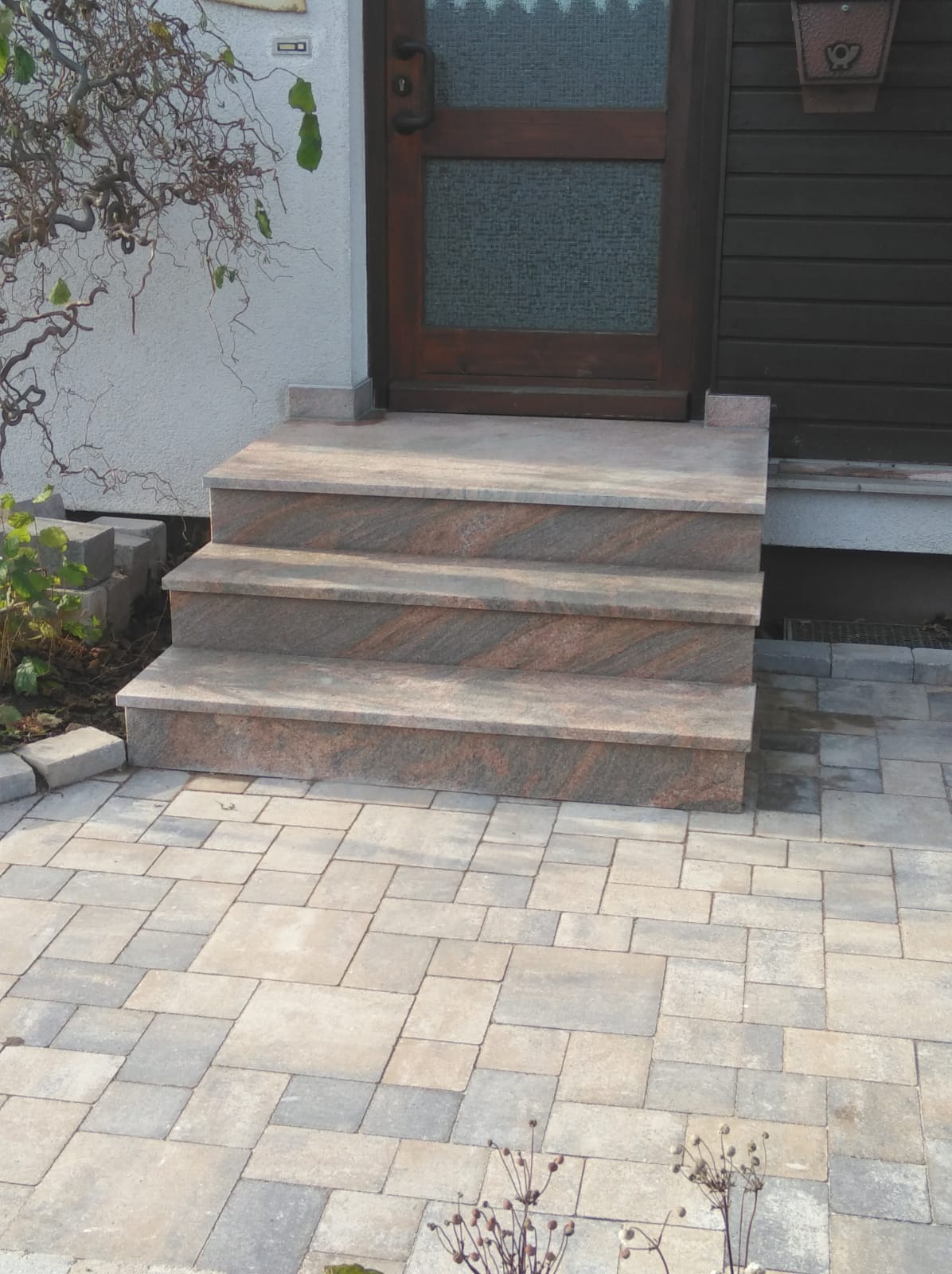 Naturstein - oder Kunststeintreppen im Innen - und Außenbereich. Auf Wunsch mit Fleckschutzimprägnierung und Farbtonvertiefung. Beratung, Aufmaß, Fertigung, Lieferung und Montage. Jetzt unverbindliches Angebot einholen.